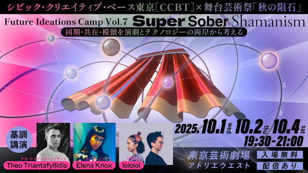 シビック・クリエイティブ・ベース東京[CCBT]では、第7回目となる未来提案型キャンプ「Future Ideations Camp Vol.7|Super Sober Shamanism:同期・共在・模倣を演劇とテクノロジーの両岸から考える」を、10月1日より東京・池袋で開催される舞台芸術祭「秋の隕石」との共同企画プロデュースで実施します。演劇とテクノロジーをテーマに、アバター、シミュレーション、没入型環境といったテクノロジーを通じて、身体化された経験、儀式、パフォーマティブな実践がどのように再構築され得るかを探り、新たな「演劇」の提案を目指す本プログラム。それに関連し、一般公開イベントとして基調講演を開催します。