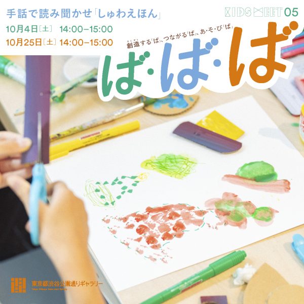 東京都渋谷公園通りギャラリーでは、子どものプログラムKids meet 05「ば・ば・ば」の関連イベントとして、手話による絵本の読み聞かせ「しゅわえほん」を開催します。