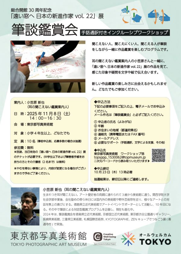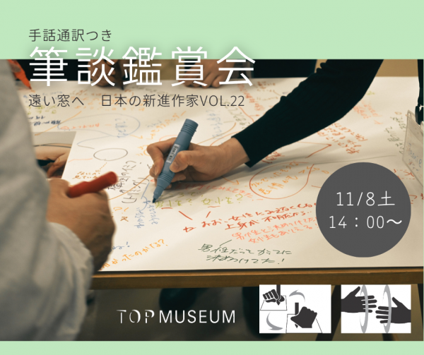 耳の聞こえない鑑賞案内人の小笠原さんと一緒に、「遠い窓へ 日本の新進作家vol. 22」展の作品を見て、感じた印象や疑問を文字や絵で伝え合います。